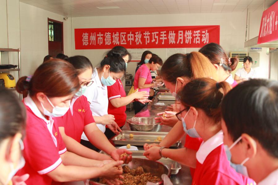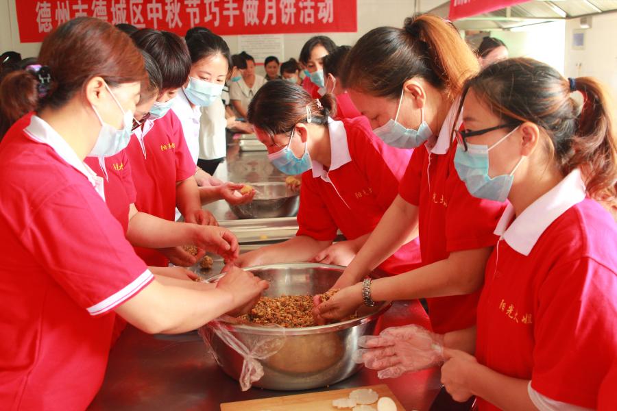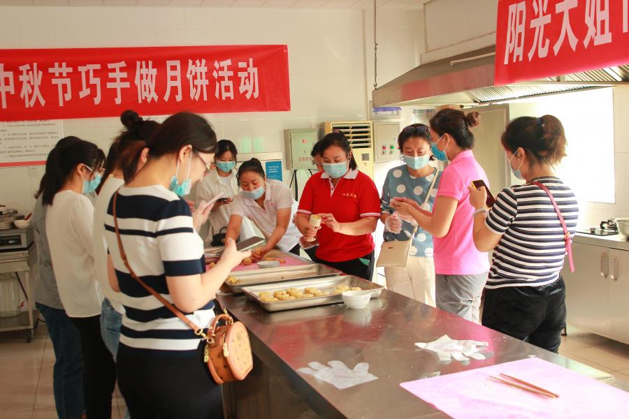 ? ? ? 為弘揚和傳承中國傳統文化,進一步提升婦聯干部的生活幸福感,值此中秋佳節到來之際,德州陽光大姐組織參會人員開展“巧手作月餅,喜迎中秋節”活動。來自社區19名婦聯主席和部分家政服務員在面點老師的指導下,經過搟皮、包餡、壓模、烘焙一系列工序的制作,一塊塊香氣四溢、代表團圓美滿的月餅新鮮出爐。當看到一個個漂亮的月餅從自己手中誕生時,大家都異常興奮和滿足。