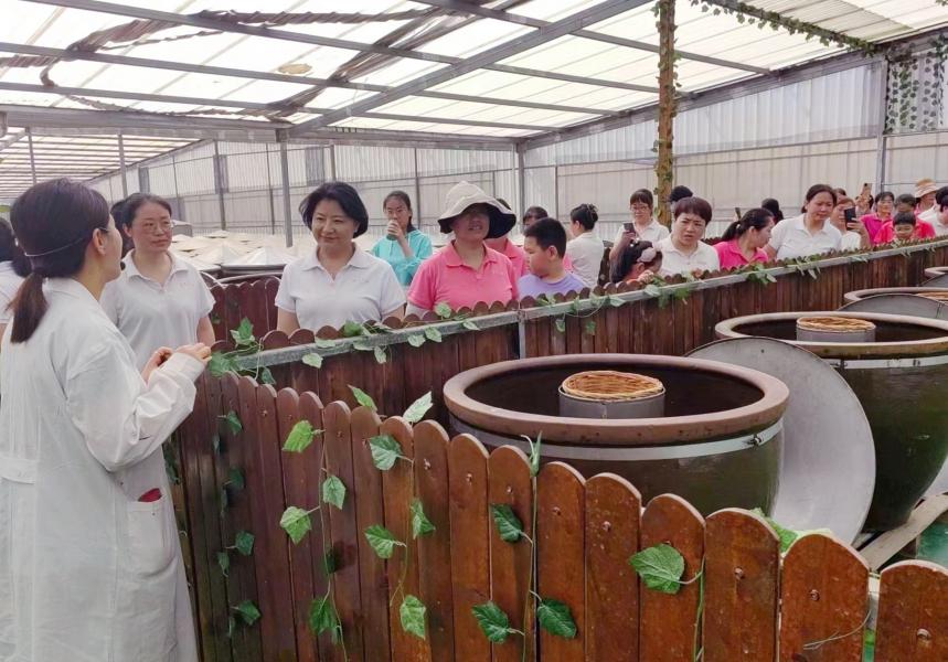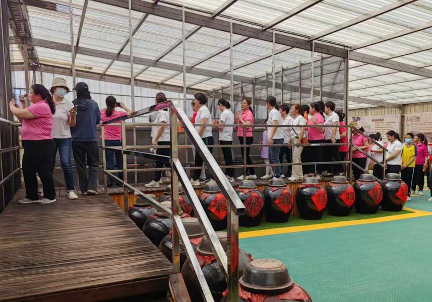 ? ? ? ?到達環球釀造廠后,職工們首先來到環球釀造廠園區內,在工作人員的講解下參觀了解了古法醬油、醋的制作工藝,零距離接觸翻曬醬油的古法醬園,感受兩千五百噸的日曬醋海,領略中華傳統美食文化釀造流程,探究醬醋文化的起源和工藝。活動中,大家還品嘗到了日曬五糧窖香醋、原汁日曬濁醬油、甜面醬,紛紛表示意猶未盡。