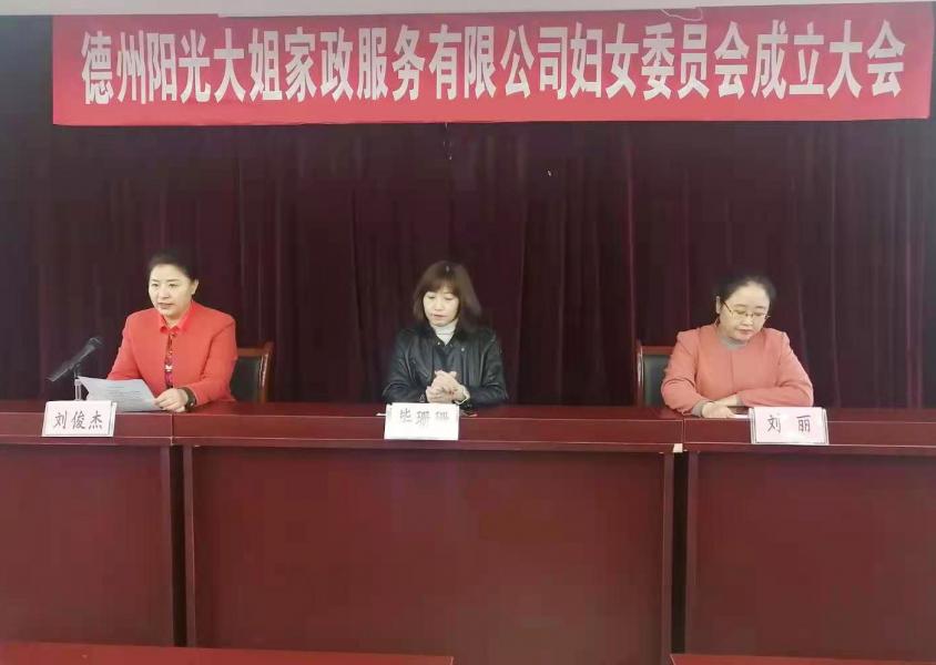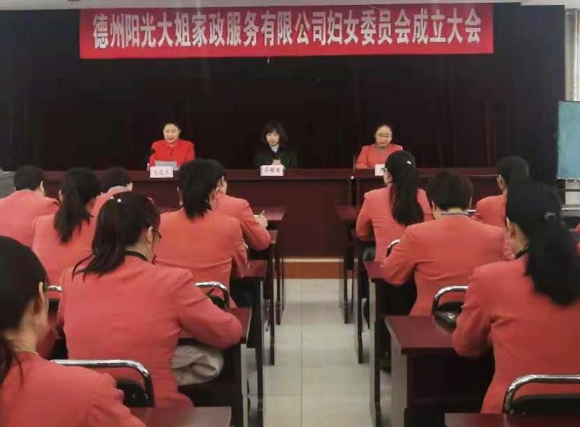 ? ? ? 為了維護婦女的合法權益,凝聚德州陽光大姐職工的力量,激發工作的熱情,促進公司的健康發展,根據相關條例,經公司黨委會研究決定,并請示新湖街道辦事處婦聯同意,于2021年3月15日召開德州陽光大姐家政服務有限公司婦女委員會成立大會,德城區新湖街道辦事處婦聯主席畢珊珊,德州陽光大姐總經理劉俊杰出席會議,28位女職工代表參加會議。
