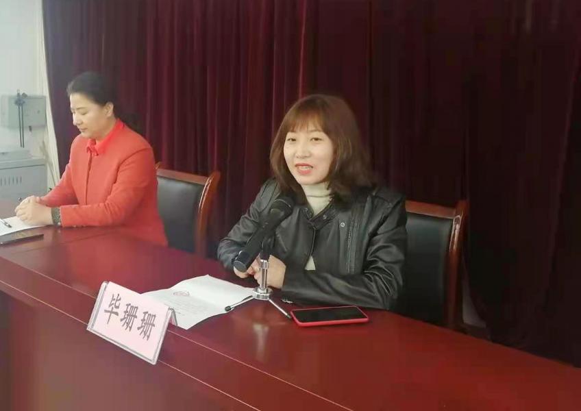 ? ? ? ?德城區新湖街道辦事處婦聯主席畢珊珊宣讀《關于同意成立德州陽光大姐家政服務有限公司婦女委員會的批復》。