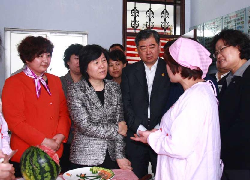 ? ? 沈躍躍來到我公司。在公司培訓室,幾十名家政人員正在接受高級家庭服務員實操練習,學習按摩、插花、育兒、食品雕刻等方面的專業技能培訓。沈躍躍走到她們中間,與大家交談起來:“每年能培訓多少位‘陽光大姐’?政府承擔多少費用?兒童每天吃幾頓飯?都吃些什么?”公司經理說:“我們的服務人員分初、中、高三個等級,初級的培訓費用由政府部門承擔。 ”正接受培訓的一位大姐說:“1歲多的孩子一天要吃5頓飯,每頓飯都有不同的搭配。 ”沈躍躍勉勵大家,家政服務是“陽光”事業,要充分發揮引領示范作用,把家政服務打造成為婦女姐妹塑造自信的舞臺、相知相幫的家園、和諧共贏的基地。