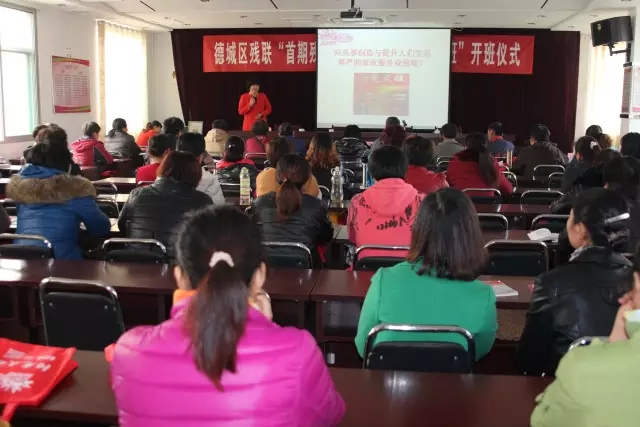 為落實德州市人民政府關于《德州市殘疾人“整體趕平均、共同奔小康”行動方案》,促進殘疾人就業創業,德城區殘疾人聯合會舉辦,由德州陽光大姐家政職業培訓學校承辦的德城區“首屆殘疾人家政服務技能培訓班”于11月5日上午舉行了開班儀式。